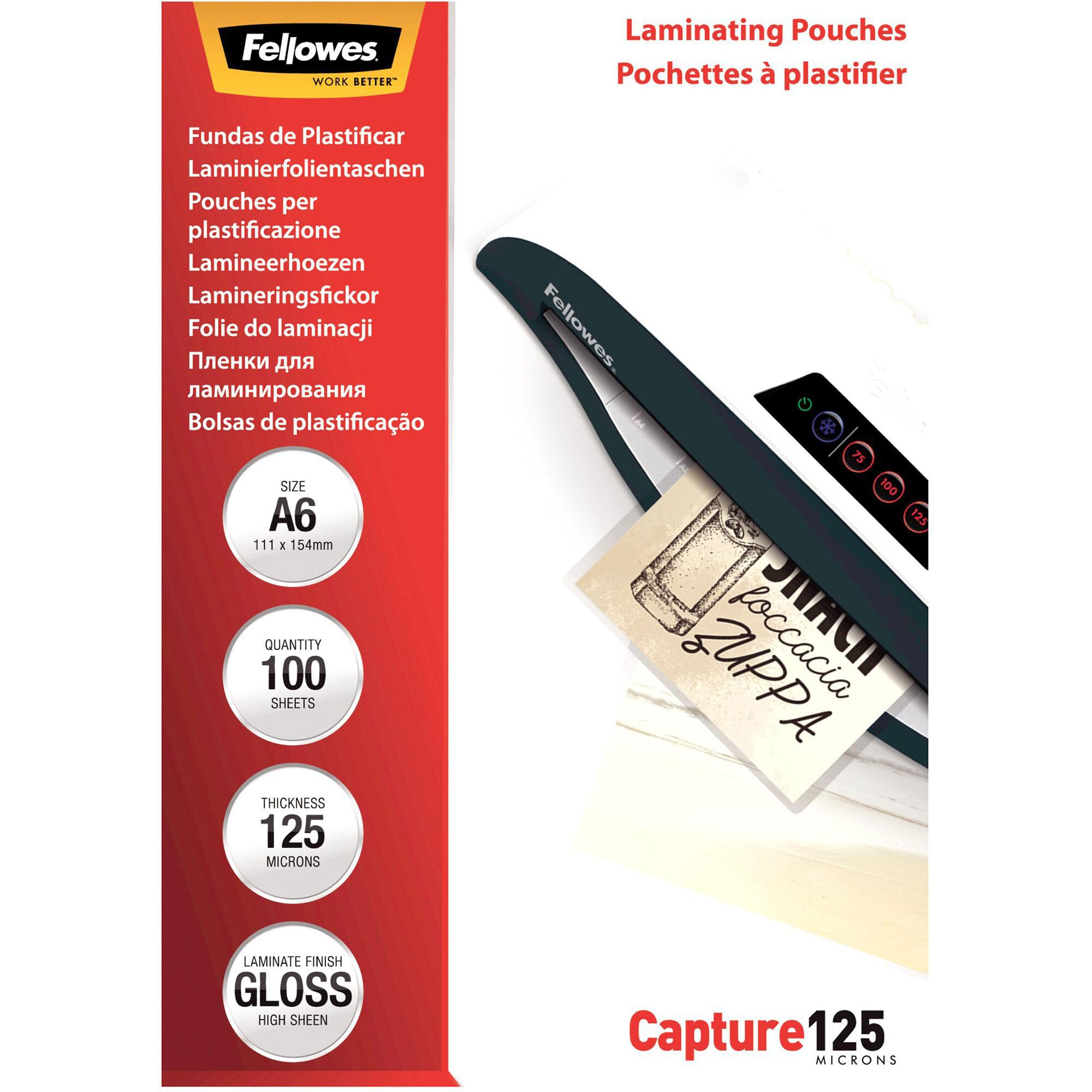 Feuille de plastification Fellowes A6, 2 x 125 microns, brillant, 100 unités